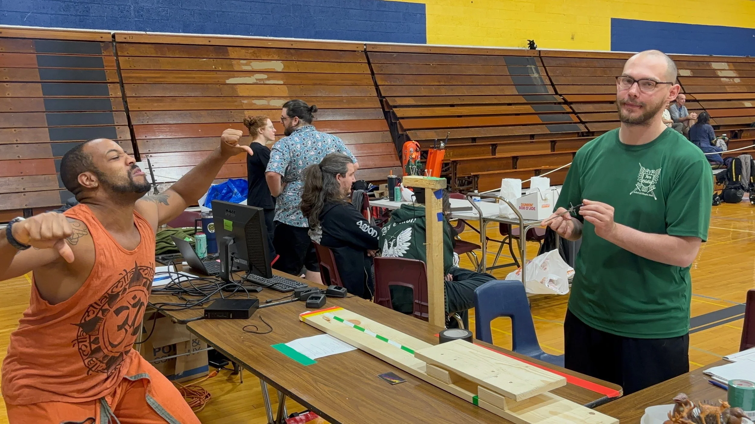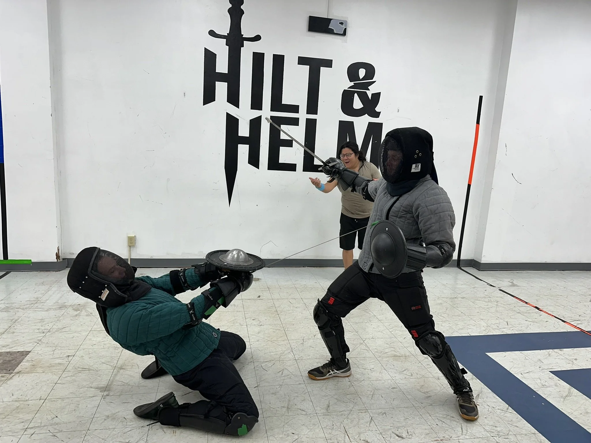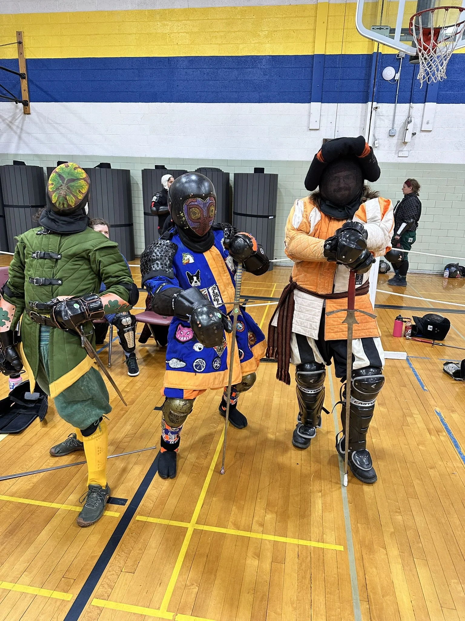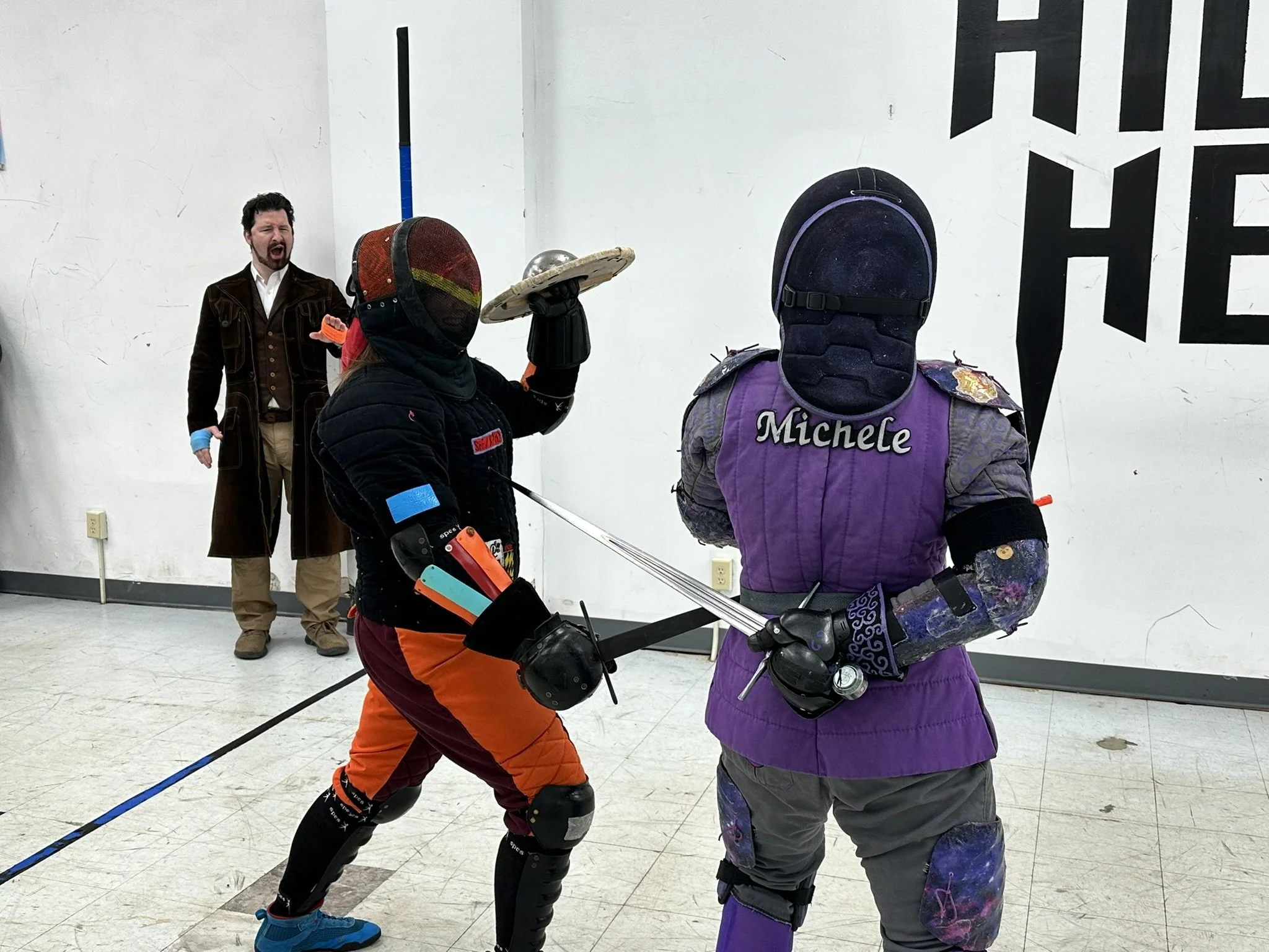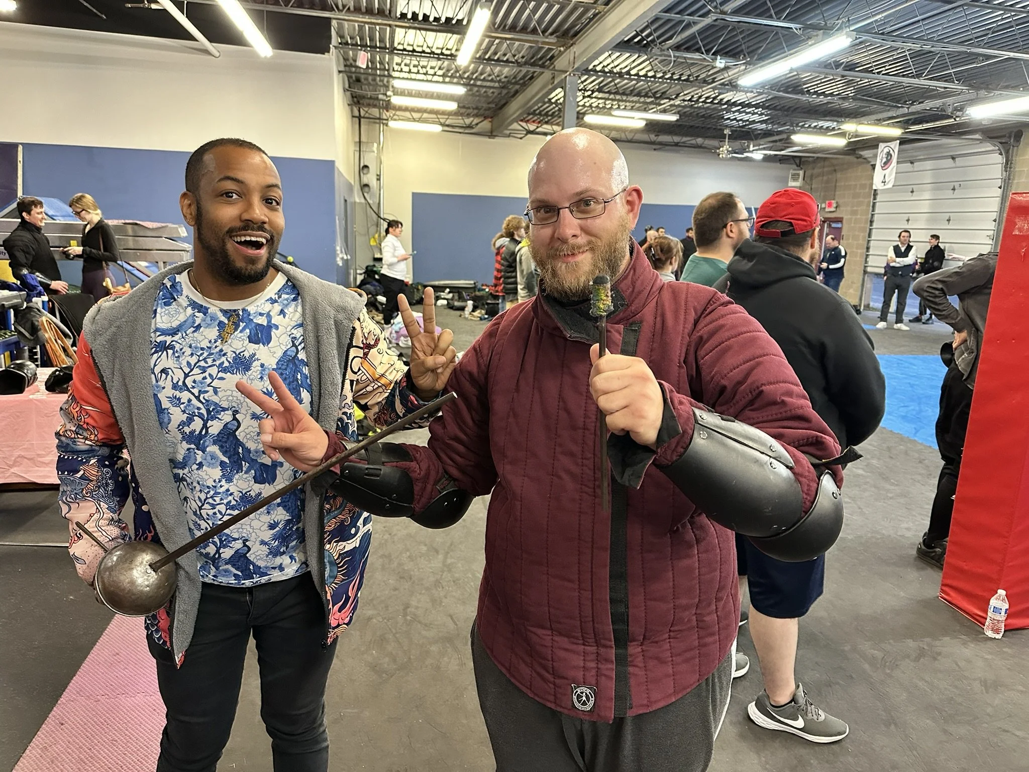 Their justification for disallowing ring guards on swords was that if a takedown occurs, landing on a ring guard sword could severely hurt someone. My counter argument is that landing on the floor could also severely hurt someone, which is why most tournaments do not allow take downs at all. Personally, I take issue with any tournament that disallows one handed thrusts considering they are perfectly martial in literally every other weapon. As long as the strike lands with control, it should be allowed. This feels more like the tournament organizers shoe-horning their opinions into the ruleset. I mean … it is their tournament and they can do what they want, but rules based on personal preference and not safety or economy of time feel like an abuse of power to me. And doubles are a natural consequence of two fighters not recognizing when the other is attempting an attack. They happen at both low-level fencing (where each fencer just isn’t aware) and at high level fencing (where each fencer is going so fast it becomes hard to determine when an attack is about to begin). Penalizing them both as if the doubling is an intentional action feels unfair to me. But going to tournaments is as much about getting out of your comfort zone as it is about bonking people upside the head, so I put aside my many aspersions to compete anyway.