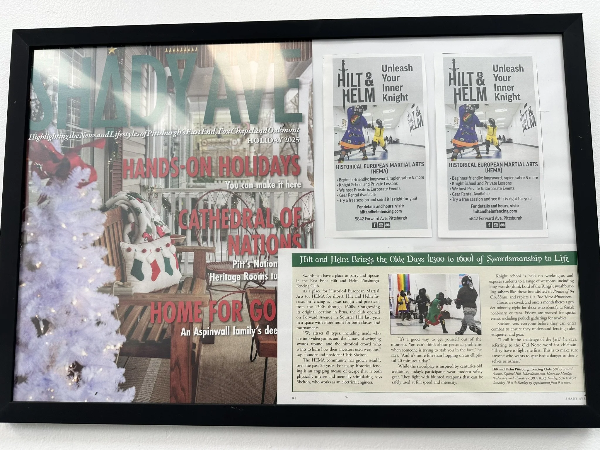 For their holiday edition, Shady avenue magazine asked to interview us since they cover a bunch of local businesses in the Squirrel Hill area. After being approached by Deb Hansen, she and I have a very pleasant conversation about what the club is, what we do, and where people can contact us. Not wanting to just be a feature story we also bought an advertisement so people would know where and how to reach us. Considering that this club’s humble origins, it’s really amazing to see us sharing space with another club, to getting our own brick and mortar location, to now being featured in print media and on the news! Here’s the article they wrote as well as the advertisement we took out!