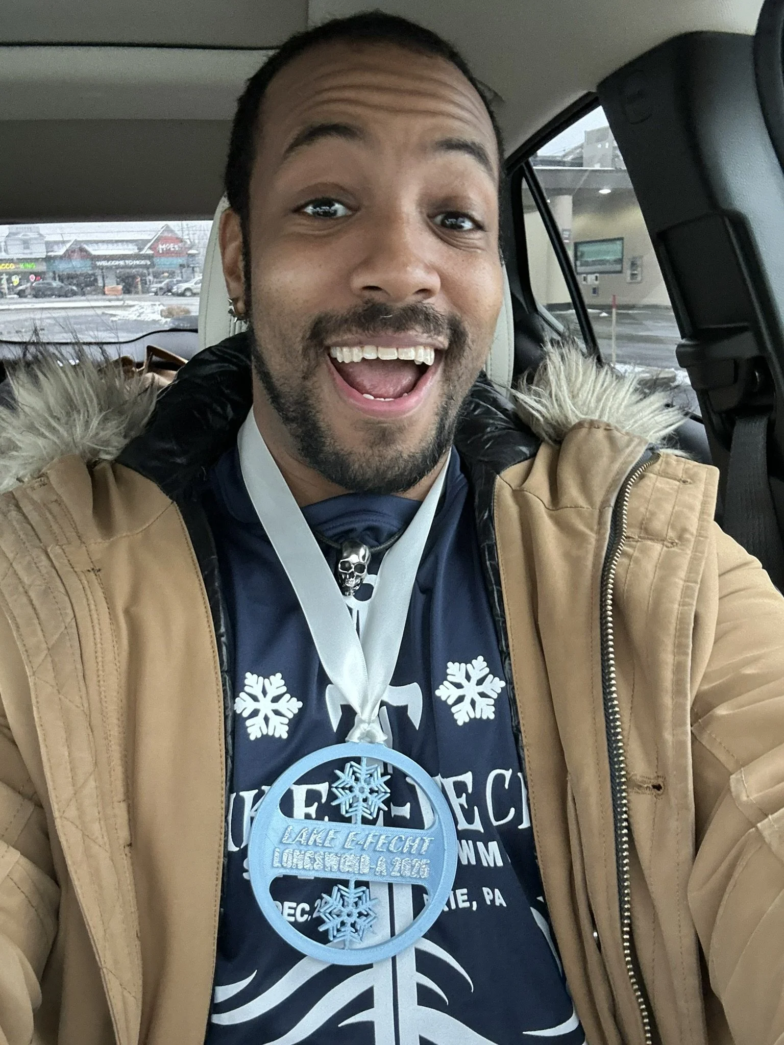 The next day was the open saber. I won all my pool fights, and it was smooth sailing until the bronze medal match. There I squared off against Logan Caldwell. The two of us officially first met at Duel for the Jewel back in 2024 when we did a little sparing before the tournament and I kept him from getting his first medal in saber. Then we met again at Scioto Open 2024 where we both ended up with bronze medals. Now he stood before me again. If I was happy to see Olivia best me after years of seeing her struggle to finally become the champion she is today, that feeling was felt several times over when Logan whooped my ass! Granted, 7 to 12 isn’t exactly “going softly into that good night”, but I had essentially been doing the same thing all day (attacking the outside line). He picked up on that, baited my attack, and just murdered the shit out of me to sail into the gold medal match and ultimately win gold for the whole event! Great job Logan! Couldn’t be happier to get my ass beat. Now me and my two new medals are gonna ride off into the sunset.