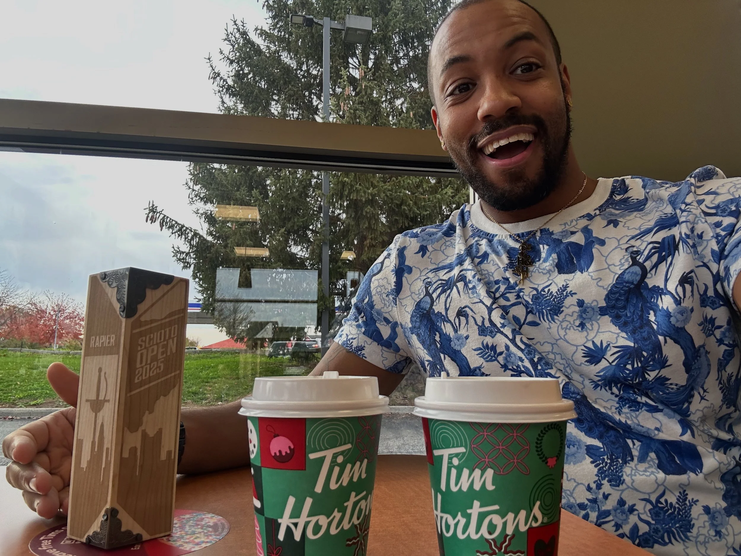 On November 8th, I travelled west to Ohio to Columbus for Columbus United Fencing Club’s annual event: Scioto Open 2025. This was the spiritual successor to their old event Blue Box open back when they were apart of Royal Arts Fencing club. It was a Blue Box that I got my first ever for-real-zies medal back in 2018 so it’s always a pleasure coming back to an event so near and dear to my heart as well as wonderful event to bring my new rising star students to cut their teeth on a fun and approachable tournament to hopefully get the same kind of memories I got. Unfortunately none of them could make it so I went on my own.