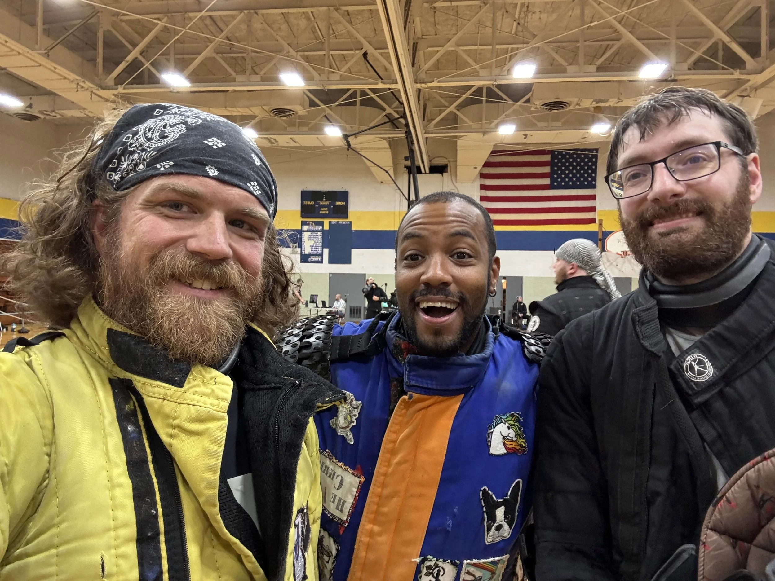 For those of you who aren’t aware, Kevin had been a part of Hilt and Helm for the past two years. First an admin, and then an advanced longsword instructor, Kevin helped refine our beginner longsword students into more polished and competent competitors and was the steel which sharpened the steel of some of our most fierce longswords-men, myself included. He’d told me he was stepping down from his position and the club, but when he suddenly showed up fighting for another club in town I’d be lying if I said I wasn’t surprised. Not angry, just surprised and a bit sad. No person “belongs” to any fencing club. And Waterfront has some very talented fencers that are able to help refine his longsword skills. Had I not started Hilt and Helm I would have joined up with them as well. When you’ve been with an organization for two years and you’ve learned all you can from them, if you’re really interested in broadening your horizons it’s only natural to move on to fight with another organization. Plus as ideologically aligned as our clubs are, it’s much healthier to think less in a “my club” versus “their club” mentality and more in a “Pittsburgh solidarity” mentality. Across three clubs and a group of friends, Pittsburgh had 10 fighters representing the Steel City in every event. With that mindset, I walked into the first of the three tournaments I’d signed up with a whole group of people to cheer on!