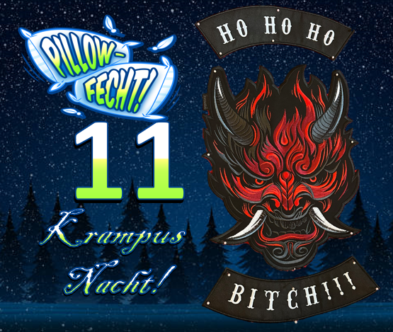Join Hilt and Helm for our quarterly in-house tournament, holiday party, and 4th year anniversary: “Pillowfecht 11: Krampus Nacht!” In this un-ranked in house tournament, fencers will compete together to defeat Krampus for privilege of rooting through his sack of unsold merchandise that we don’t feel like stocking into the new year. Once the tournament is done, there will be cake and food from Cheng Du Gormet.