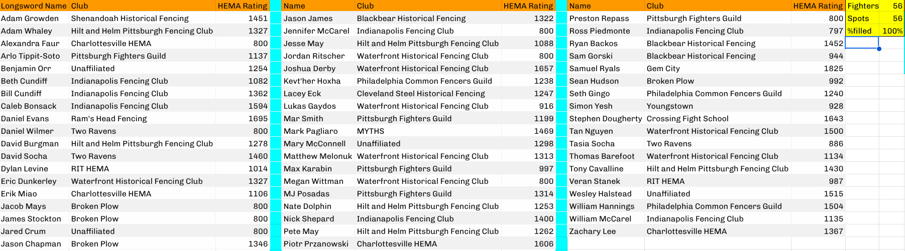 Tournament Rosters/Wait Lists